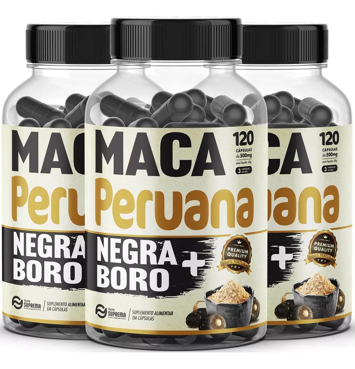 3 Maca Peruana Negra + Boro 500mg 360 Capsulas Premium